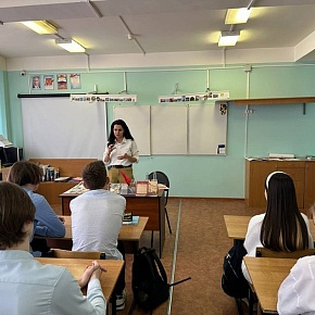 После занятия начальник Управления приёмной комиссии и профориентационной работы рассказала школьникам о программах и условиях поступления, а также поделилась информацией о ближайших мероприятиях.
