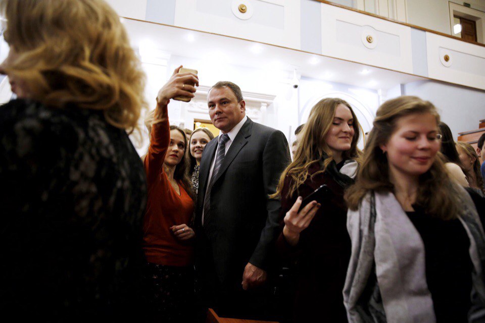В завершение мероприятия проректор по научной работе Владимир Синюков поблагодарил Петра Толстого за его выступление и подарил набор книг, посвященных 85-летию Университета, а все желающие получили возможность сделать памятные фотографии с лектором.